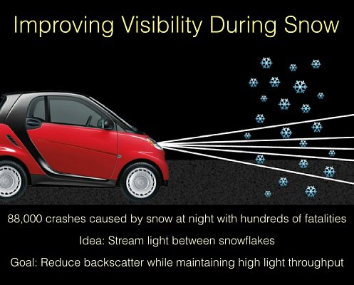 Команда инженеров Университета Карнеги-Меллон (США) изобрела светодиодную автомобильную фару с функцией гибкой адаптации светового пучка к дорожным условиям. Свет каждой фары будет состоять из миллиона независимых тончайших лучей, в результате чего водителю не нужно будет переключаться с ближнего на дальний и наоборот.