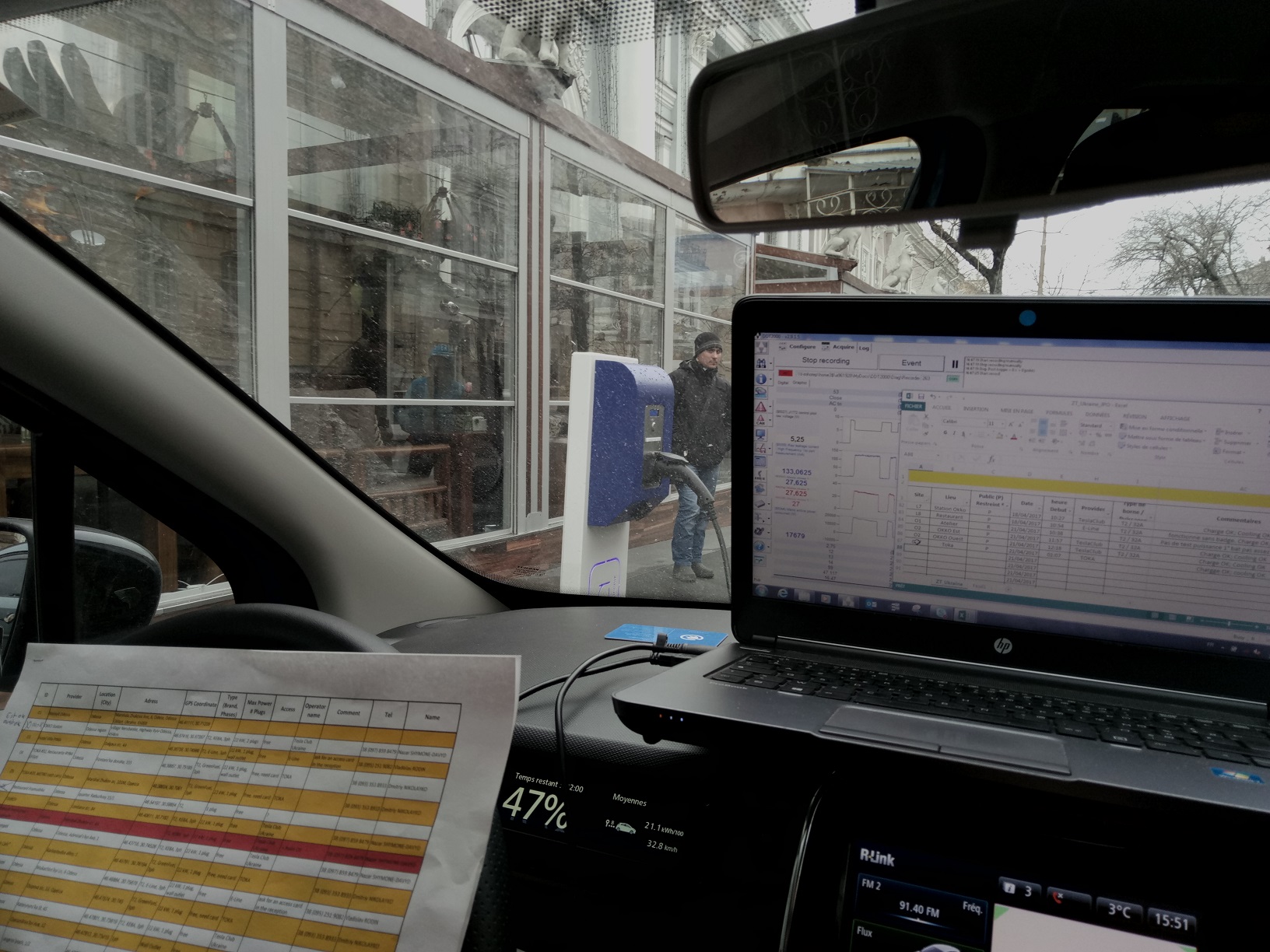 Во время тура по Украине, который длился 2 недели, эксперты из Франции тестировали каждую зарядную станцию на электромобилях ZOE. Проверка охватила 3 города (Киев, Львов, Одессу) и 50 км вокруг каждого из них.