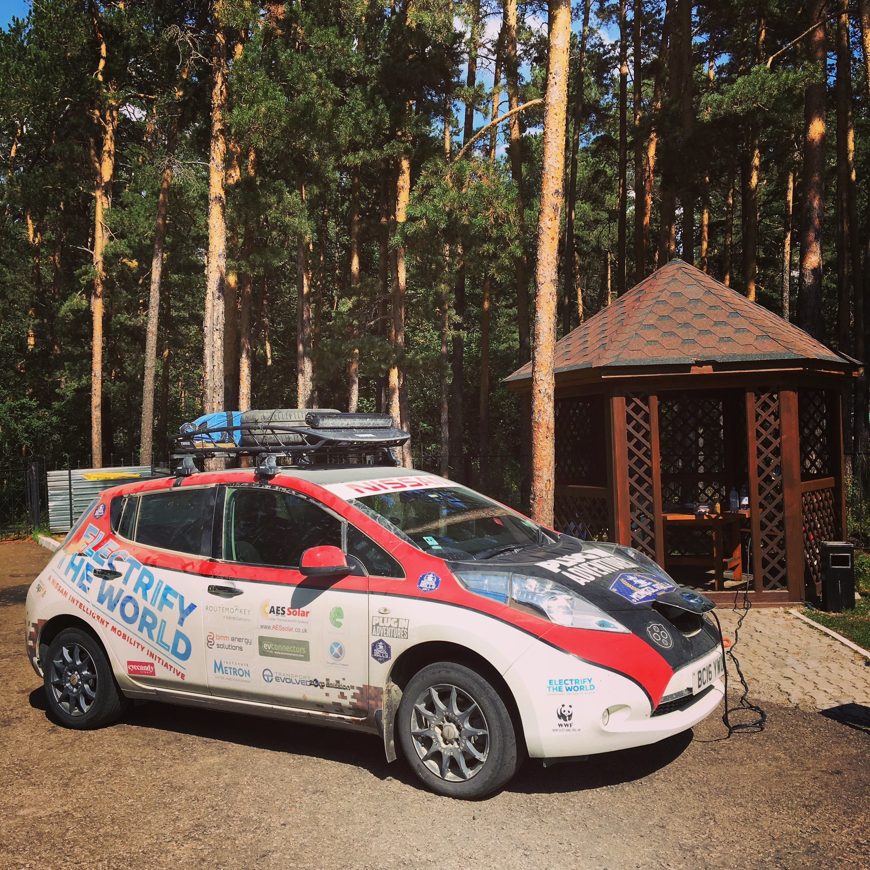 В Европе Крис и Джулия пользовались сетью станций быстрой зарядки, где можно зарядить батарею электромобиля на 80% всего за 30 минут. Однако в Болгарии и дальше, за ее пределами, шотландцы столкнулись со значительным сокращением количества станций быстрой зарядки. Поэтому им пришлось переключиться на альтернативные варианты получения электроэнергии. Это были, например, бары, кафе, отели, хостелы, парикмахерская, почта, гаражи, автомобильные дилерские центры, тракторный гараж, полицейский участок и три пожарных депо в России. Был даже момент, когда посреди сибирской тайги квалифицированный электрик подсоединил их LEAF прямо к опоре линии электропередачи. Кроме того, во время своего путешествия по Сибири экипаж “Plug In Adventures” посещал официальные дилерские центры Nissan. Первым из них был автоцентр “Сибирские Моторы” в городе Новосибирск.