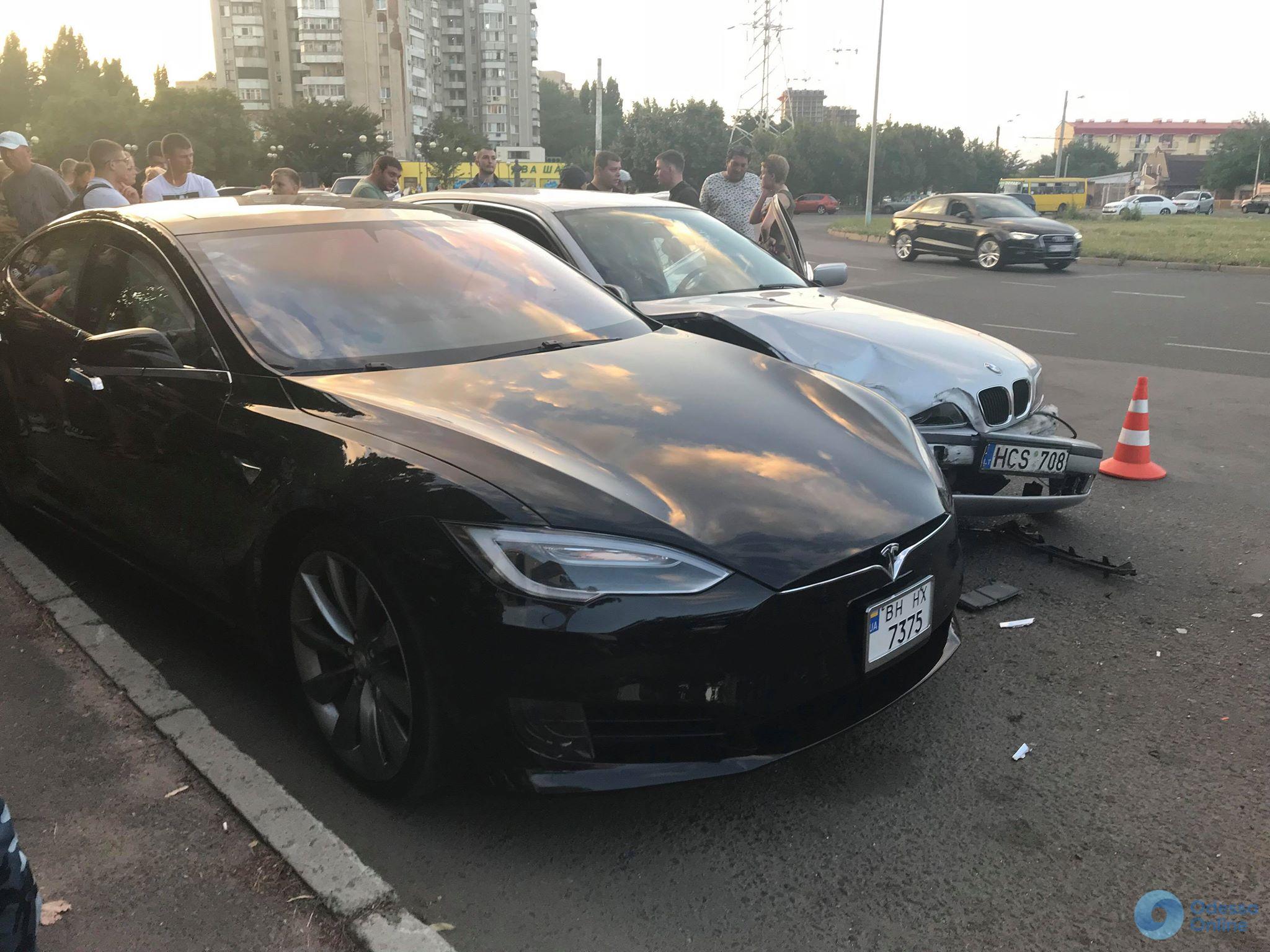 Вечером в понедельник, 16 июля, в Одессе произошла авария с участием Tesla Model S и BMW на “бляхах”.