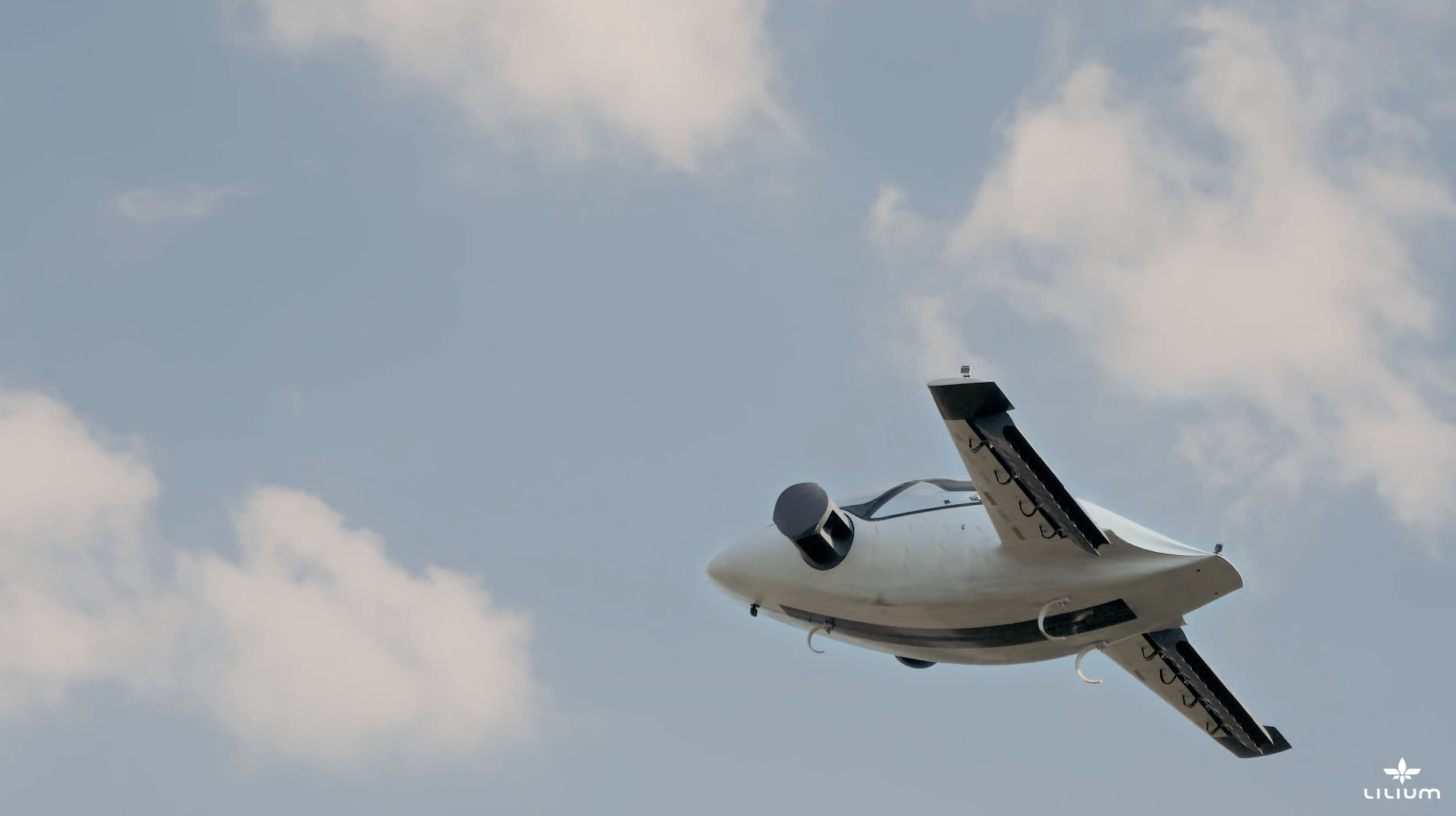 - При взлете створки Lilium Jet направлены вниз, чтобы обеспечить подъем по вертикали.