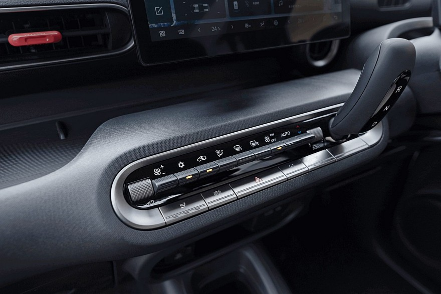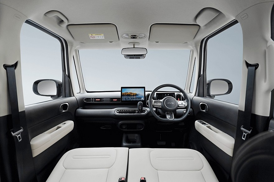 Усередині BYD Racco встановили лаконічну передню панель і роздільні екрани панелі приладів й мультимедійної системи. Під центральним планшетом є два ряди фізичних кнопок, які відповідають за керування кліматом та іншими функціями.