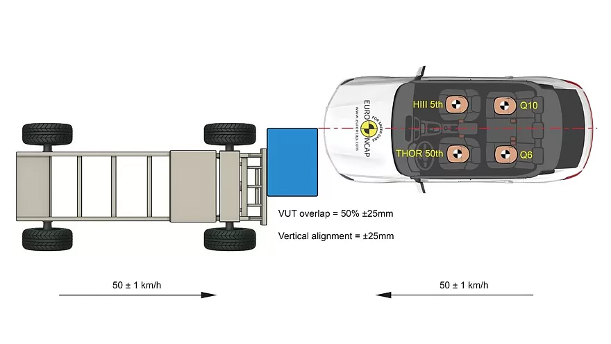Так, фронтальний удар об стіну на швидкості 50 км/год замінений фронтальним ударом об деформований бар’єр на швидкості 35 км/год. Два колишні бічні краш-тести збережені.
