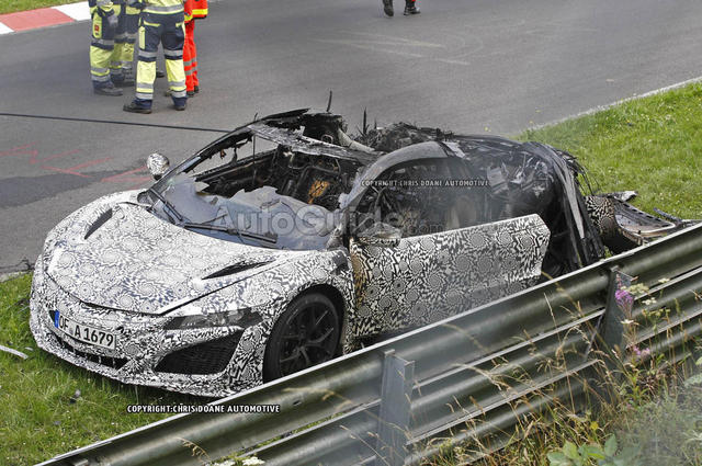 Прототип суперкара Honda NSX 2014 полностью сгорел во время испытаний. Тесты автомобиля проходили на Северной Петле Нюрбургринга.