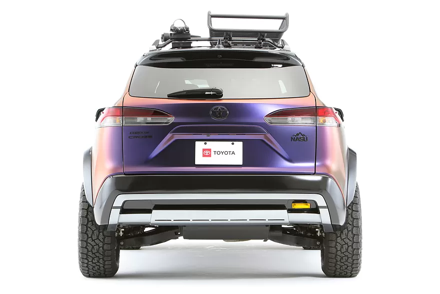 Творці шоу-кара передбачили додатковий повітропровід на капоті, чорні ручки дверей, аналогічного кольору шильдики на кузові, а також багажник на даху з кріпленнями для гірського велосипеда. Ще Corolla Cross Nasu Edition забезпечили підсвічуванням дверних порогів, а в багажнику розмістили герметичний бокс, bluetooth-колонку JBL і портативний холодильник.