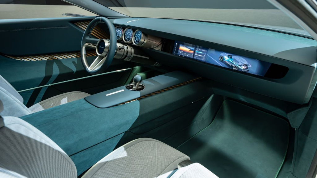 Чотиримісний салон з роздільними задніми кріслами має двокольорове оздоблення. За триспицевим кермом з міткою нульового положення встановлені три круглі дисплеї приладів. У передню панель вбудований широкоформатний екран медіасистеми. На вершині центрального тунелю встановлено селектор трансмісії.