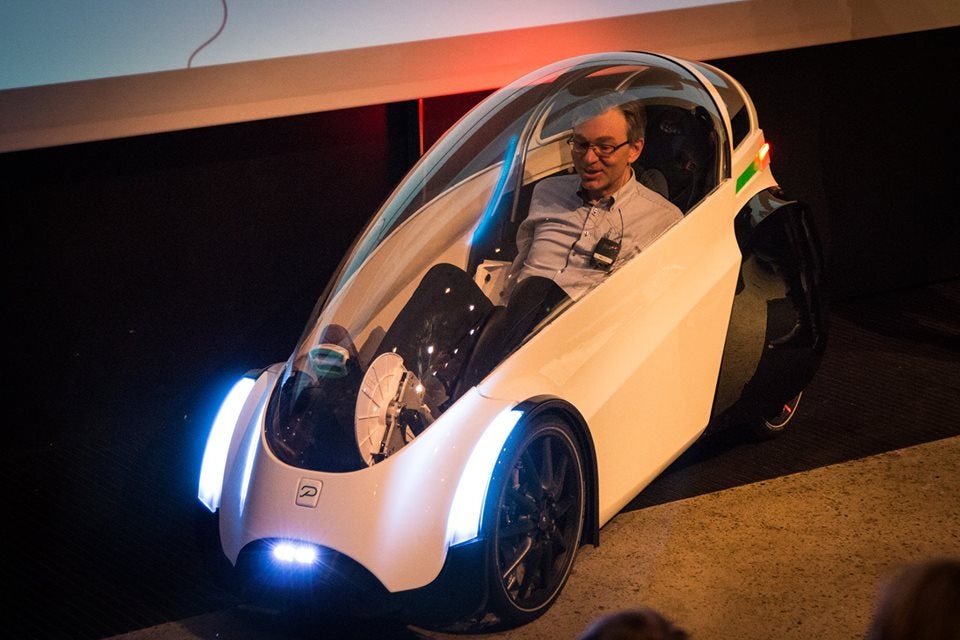 Конструктивной особенностью Podbike являются педали, подключенными напрямую к генератору. Когда водитель их крутит – энергия передается к паре моторов, установленных на задних колесах. Кроме этого, дополнительная энергия поступает и от съемного аккумуляторного блока. Максимальная скорость Podbike составляет 25 километров в час.