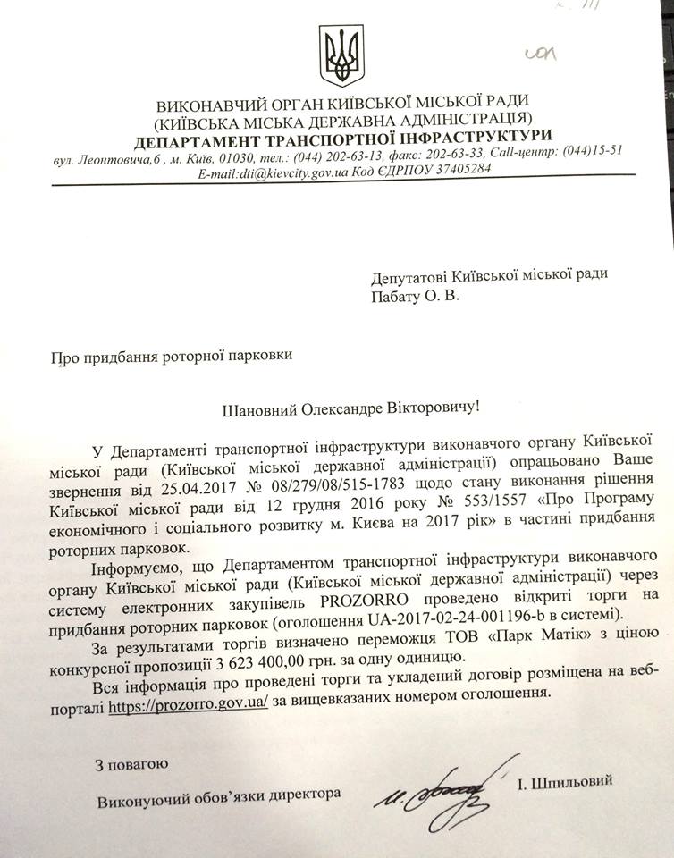 Отметим, что согласно данным Prozorro, изначальная стоимость парковки была 3,660,000 гривен, а ТОВ “Парк Матик” поставило ее дешевле. Таким образом КГГА удалось сэкономить 37,000 гривен.