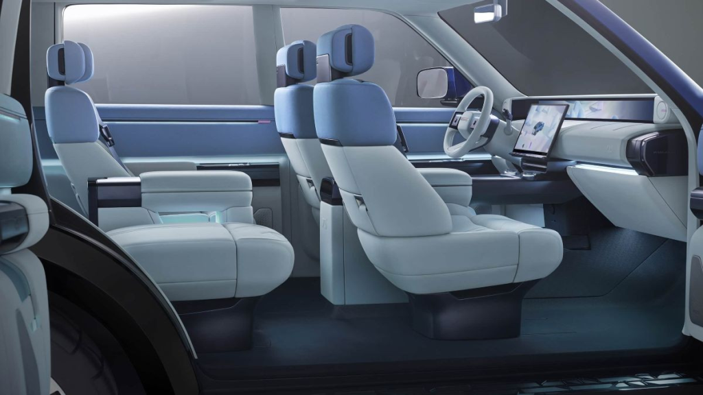 Нижче на центральному тунелі розташовані дві великі рукоятки і майданчик бездротової зарядки. Заявлено, що за розробку бортової електроніки на основі продуктивного чіпа Qualcomm Snapdragon 8397 відповідала компанія Huawei, її авторству належить просунутий автопілот ADS 4.1 з лідаром.