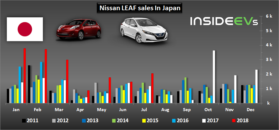 В июле в Японии было продано более 2000 автомобилей Nissan LEAF – второе поколение электромобилей привлекло на 75% больше покупателей, чем год назад.