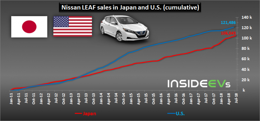 Общее количество LEAF, проданных в Японии, теперь составляет 106045. Разница между продажами флагманского электромобиля от Nissan между Японией и США начинает сокращаться – и там, и там продано свыше ста тысяч LEAF.