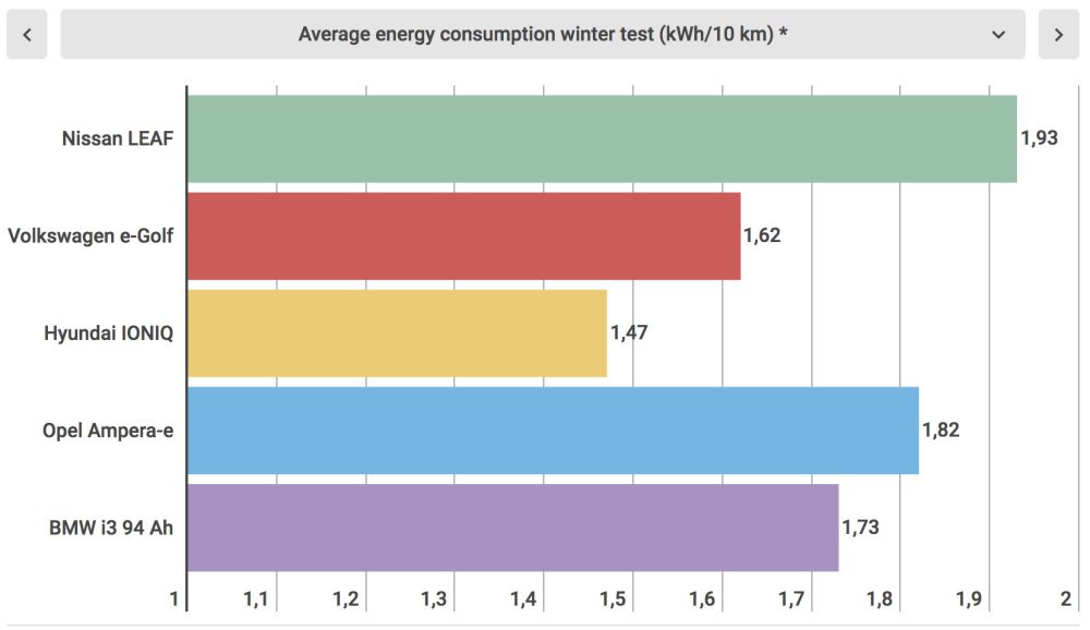 С точки зрения вождения команда обнаружила, что “Nissan LEAF и Volkswagen e-Golf выделяются из толпы в отношении безопасного и устойчивого управления”, в то время как BMW i3 и Opel Ampera-e показали себя хуже. Ioniq Electric получил среднюю оценку в зимних условиях вождения.