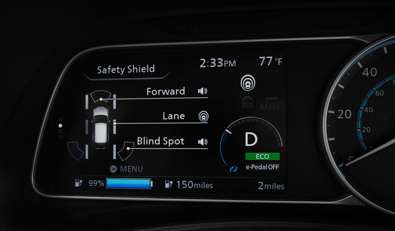 Новый LEAF демонстрирует три главных компонента новой технологии интеллектуального вождения от Nissan. Первый компонент – ProPILOT, технология автономного вождения, используемая на шоссе в рамках одной полосы, которая делает поездку проще, снижает напряжение и позволяет водителю расслабиться.