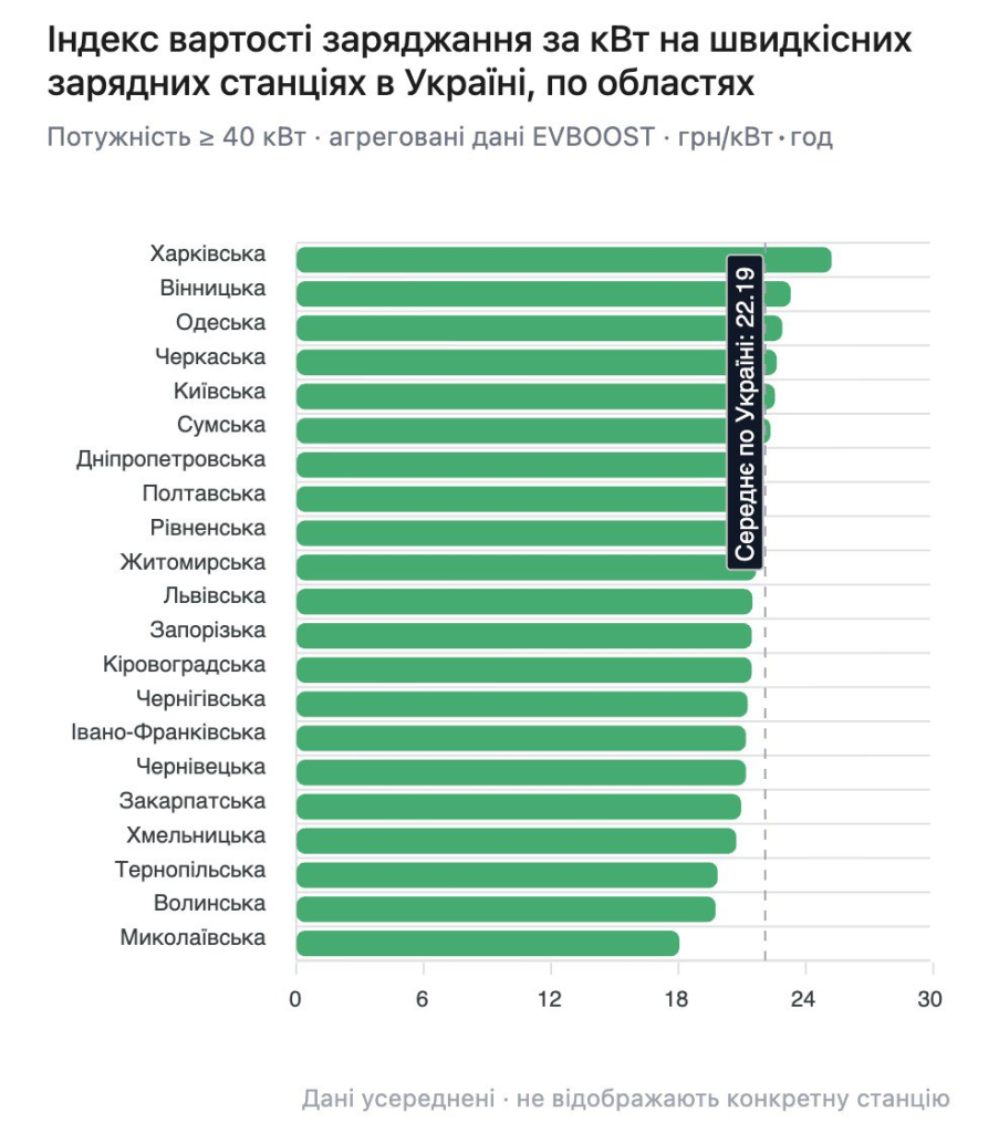 За даними сервісу Ecoboost, серед усіх регіонів України найдорожчою зарядка є у Харківській області.