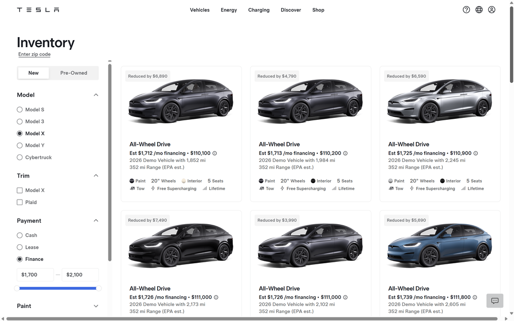 Сьогодні найдешевші серійні автомобілі Model S та Model X – це колишні демонстраційні екземпляри, які використовувалися автосалонами, і ціни на них починаються приблизно від 106 000 та 111 000 доларів відповідно. Тим часом нова Model S з повним приводом коштує 109 990 доларів, а Model X Plaid у топовій комплектації – 129 900 доларів.