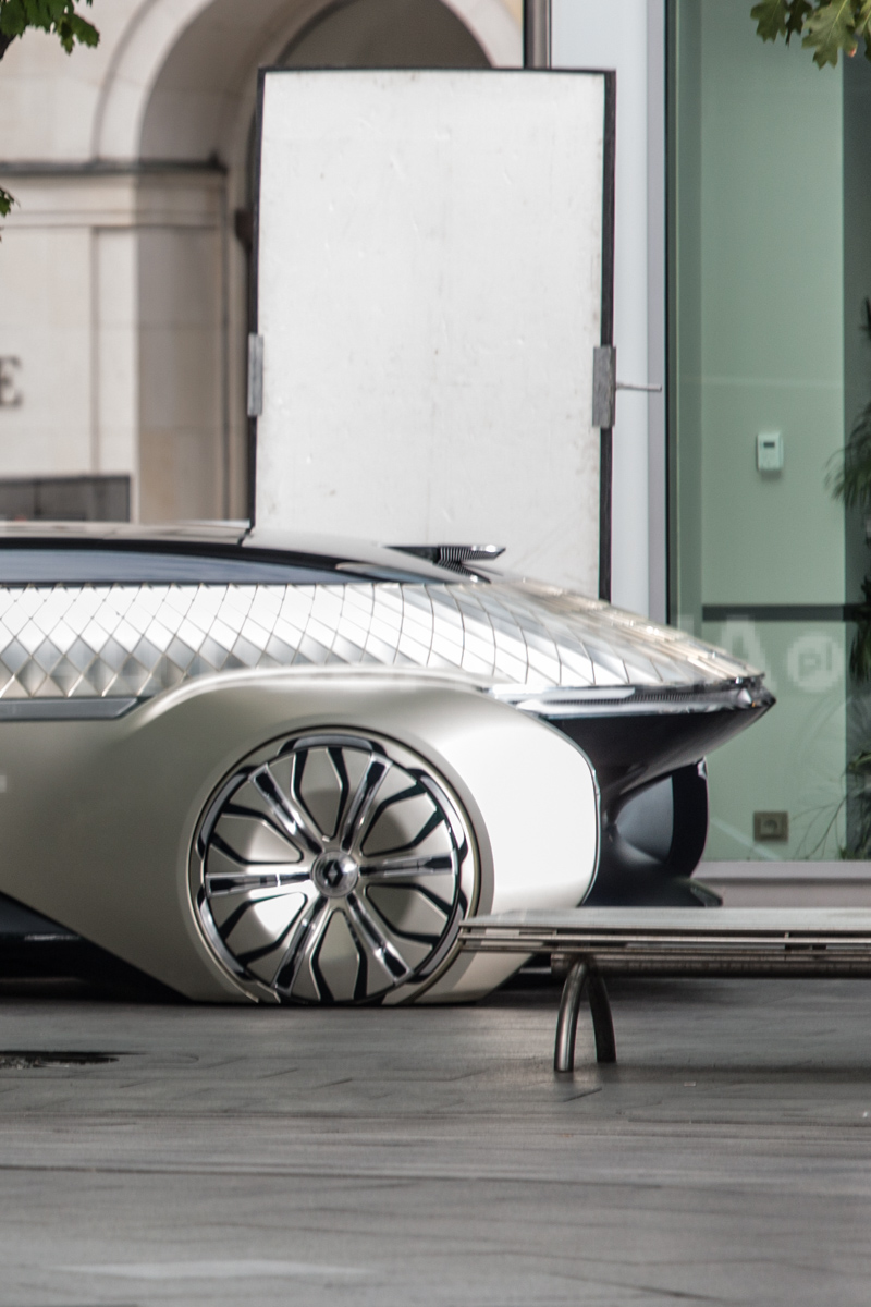 Автомобиль, несмотря на массивные колесные накладки, мог самостоятельно передвигаться. Предположительно, публичный дебют прототипа состоится на автосалоне в Париже.