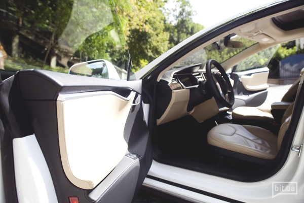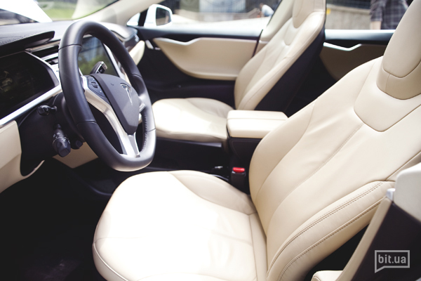 От редакции bit.ua: лично нас Tesla Model S покорила своим лаконичным дизайном, бесшумностью и динамикой (даже на Воздвиженке нам удалось найти улицу, на которой мы проверили те семые 4 секунды до сотни). Поражает вместительность: два полноценных багажника и семь (!!!) посадочных мест. Правда, последние два — в багажнике и для детей. Но, как видите, даже мы с Димой смогли там уместиться. Ну, и айпод на панели: мечта SMM-щика :) В вишлист!