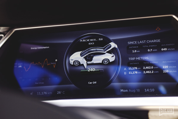 В Киеве есть, кроме этой, две Теслы, но эта — первая официально растаможенная европейская версия, ее мне привезли ребята из Львова (teslamotors.lviv.ua).