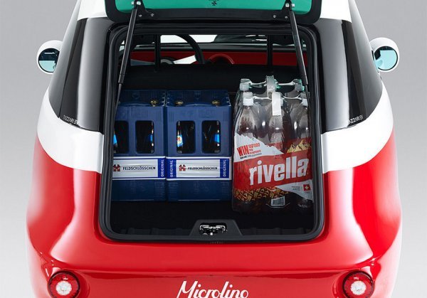 Новый Microlino весит 450 килограммов, а его длина составляет всего 2435 мм при 1500 мм ширины. Багажный отсек вмещает до 300 литров груза. Как и у BMW Isetta, у новинки полностью открывается передняя часть, сзади при этом находится узкая колея с двумя колесами.