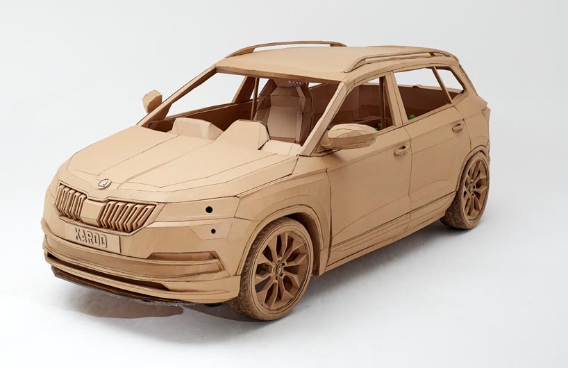 В масштабе 1:1 был построен клон Skoda Karoq из картона. Причем салон такого автомобиля полностью функционален.
