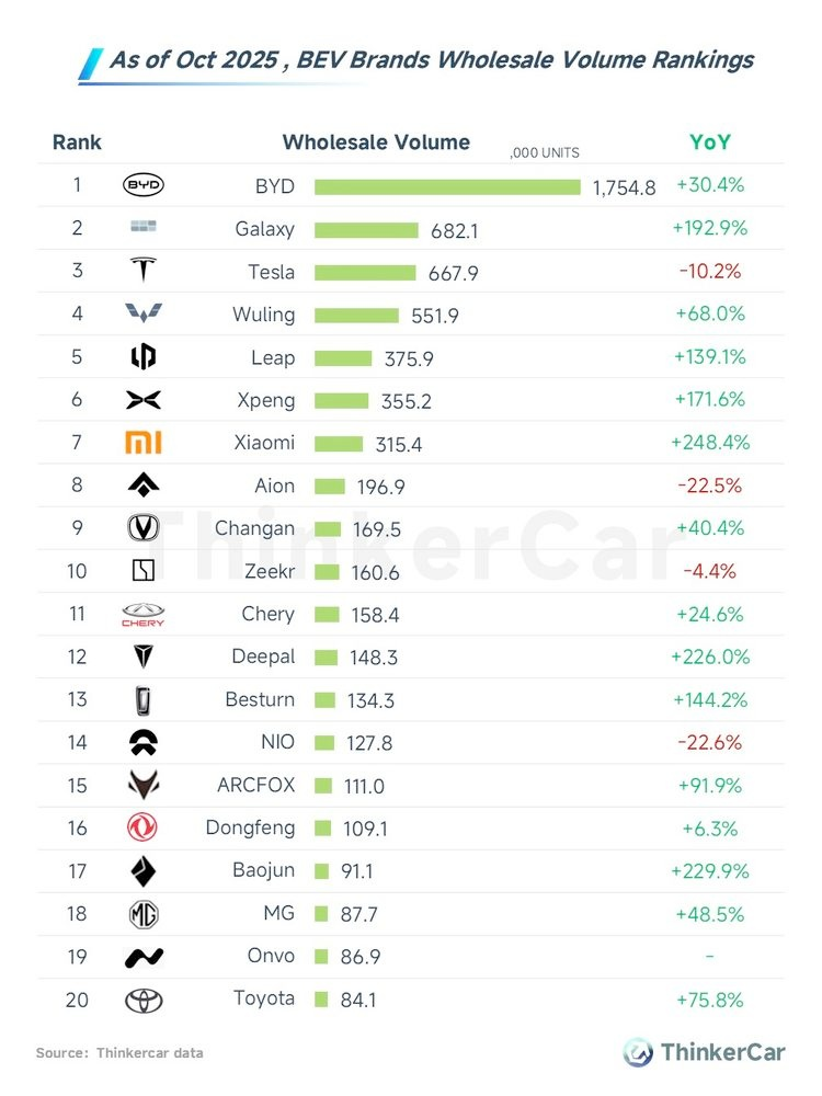 При цьому Північна Америка була гальмом для щомісячних показників, продажі електромобілів впали на 41% після рекордних максимумів у серпні та вересні, оскільки попит зменшився після закінчення терміну дії податкової пільги в розмірі 7500 доларів.