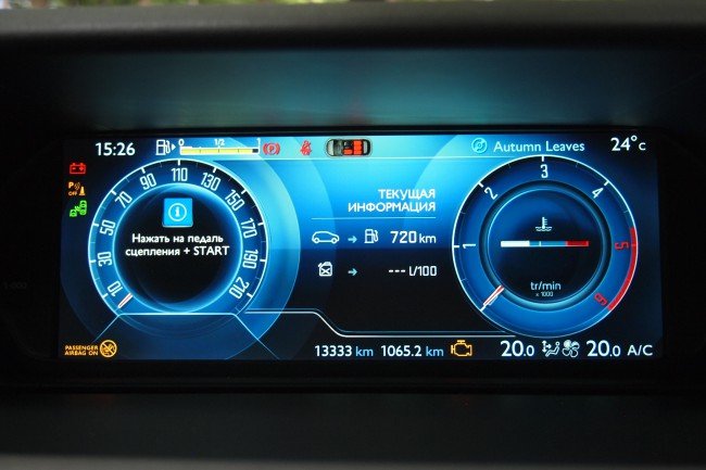 Предвидя вопрос: да, этот сенсорный дисплей есть всегда, даже в базовой комплектации, и за него не нужно доплачивать. А вот второй дисплей – это уже прерогатива максимальной комплектации автомобиля. Крупный 12-дюймовый дисплей уже не сенсорный, но HD-формата. Он выступает в роли панели приборов: спидометр, тахометр, запас топлива, круиз-контроль, навигация, данные бортового компьютера. Сюда можно вывести даже свое любимое фото.
