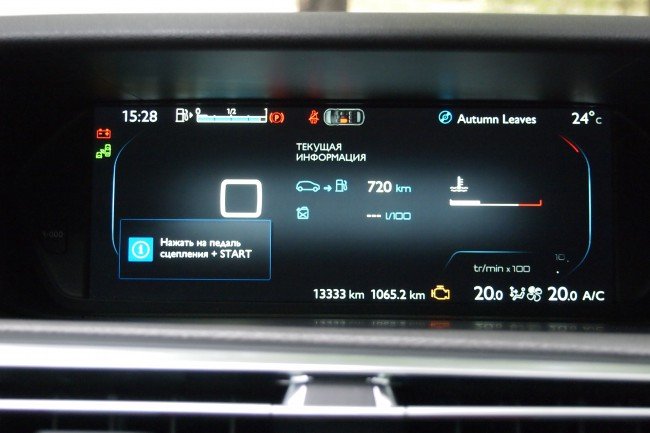 Второй дисплей в салоне CitroenC4 Picasso: 12 дюймов, HD-формат, несколько стилей вывода информации, возможность демонстрации карты навигации и картинки с камеры заднего вида.