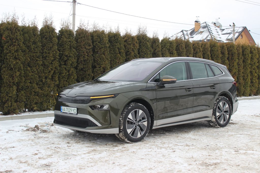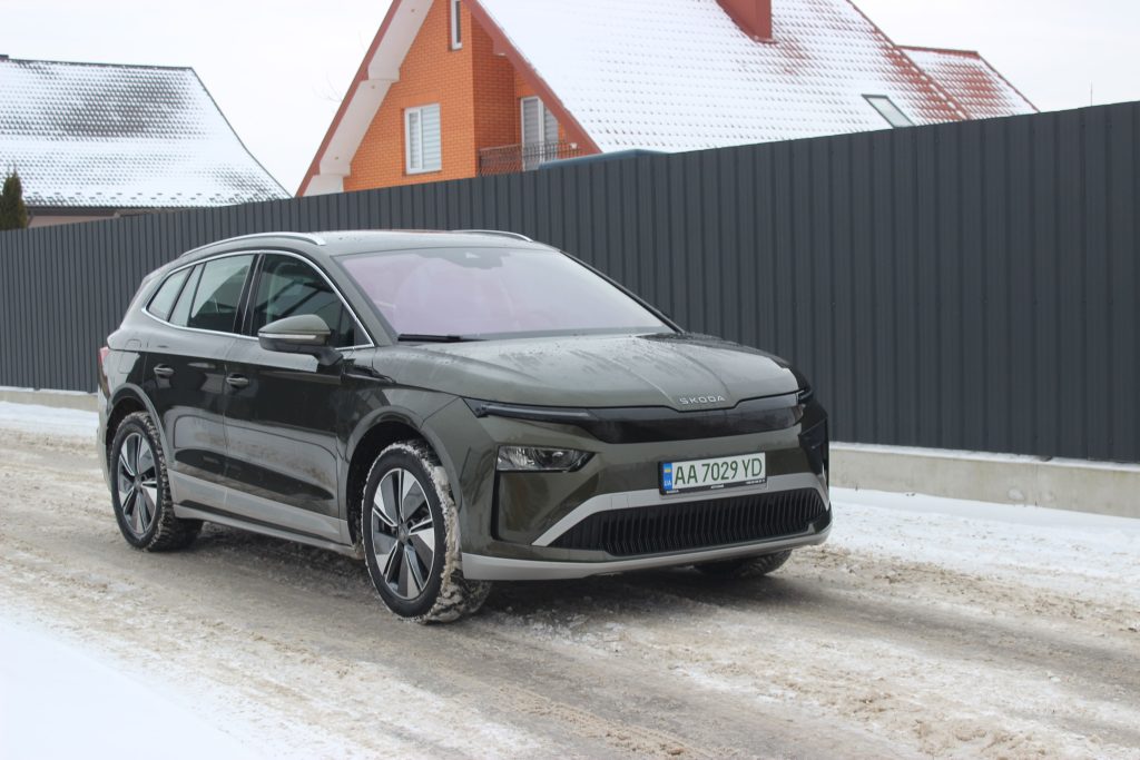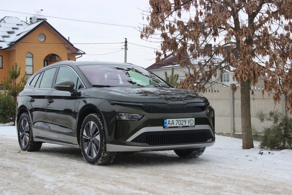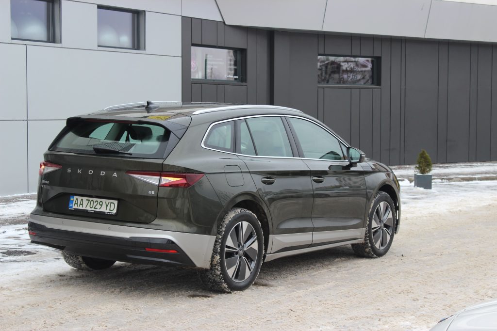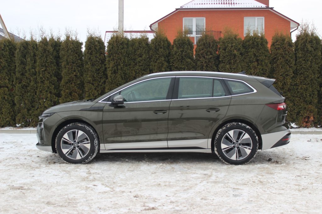 Цікаво, що з новим обвісом Enyaq став на 9 мм довшим (тепер 4658 мм). На нашому авто був встановлений пакет Sportline, який включає чорний декор, обвіс у колір кузова та колеса діаметром 20 дюймів.