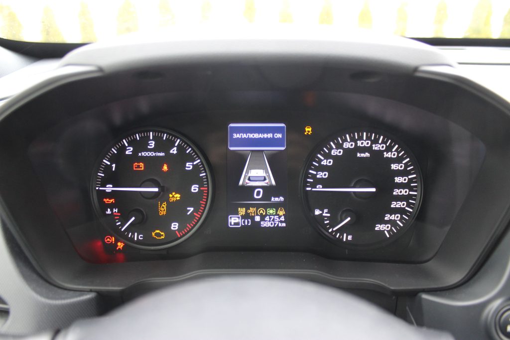 Трансмісія героя нашого тесту – той симетричний постійний повний привід, яким так пишаються японці. Цікаво, що система X-Mode, яка керує повним приводом, може мати один або два позашляхові режими їздової електроніки залежно від комплектації. На тестовому авто він один, у випадку більш дорогих версій можна вибирати між “Снігом” та “Брудом”.