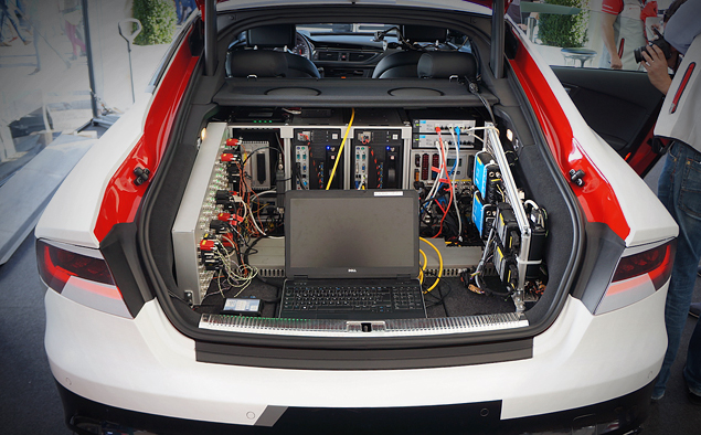 Audi же сделала акцент на другом и просто отправила «эрэску» на «Хоккенхаймринг» перед заключительным этапом немецкой кузовной серии DTM. Машина ехала по показаниям независимых GPS-устройств, которые по WLAN передавали в управляющий блок координаты с точностью до сантиметра. Электроника управляла усилителем руля, акселератором, тормозами и восьмиступенчатым «автоматом». Спорткар преодолел один круг за 2 минуты 10 секунд, а максимальная скорость составила 240 километров в час. Обладатель рекорда трассы финн Кими Райкконен (1 минута 13,780 секунды в 2004 году), известный своим спокойным характером, напрягся и в очередной раз задумался о завершении карьеры.