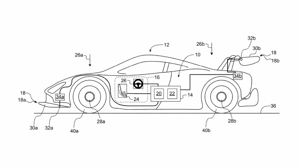 Технічно система складатиметься з рухомих елементів – спойлерів, крил або дифузорів, з приводами. У режимі дріфту вона зможе зменшувати притискну силу на задній осі, роблячи автомобіль більш чутливим до занесення.