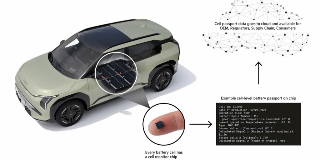 Використовуючи EV3, оснащений системою моніторингу елементів акумулятора від британської компанії Dukosi, Kia може відстежувати дані в реальному часі для кожного елемента в акумуляторному блоці та завантажувати їх у цифровий паспорт акумулятора.