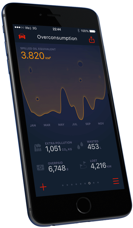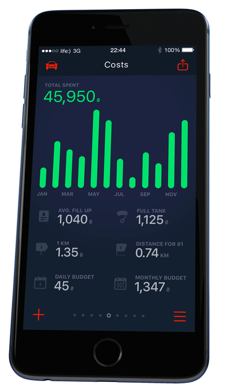 В отличие от аналогов, Jerrycan требует минимальных усилий для ведения учета. Каждый раз, когда пользователь останавливается на заправке, приложение само напоминает о создании записи. Чтобы не заставлять юзера набирать длинные числа одометра и стоимости бензина, был разработан специальный способ ввода данных: вместо клавиатуры используются слайдеры, что значительно ускоряет ввод данных, а специальный алгоритм рассчитывает текущие показания одометра и заправляемого объема с точностью до 95%. Пользователю остается лишь немного подкорректировать значения.