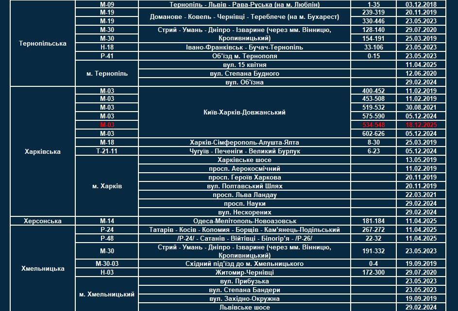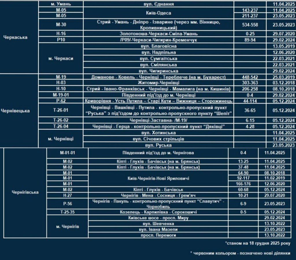 З огляду на умови воєнного стану було додано 14 нових ділянок та оновлено перелік ще 6 чинних. Загалом на автошляхах України задіють 160 приладів TruCAM.