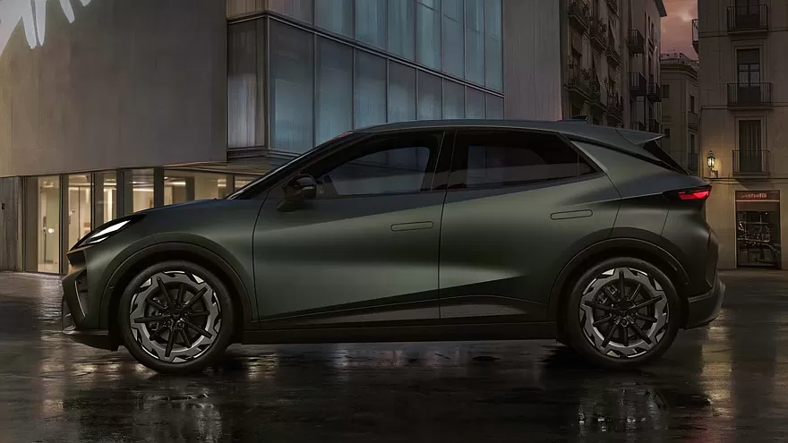 Cupra Raval отримав гостру розкосу головну оптику, виразні виштамповки, що проходять через капот, масивний повітрозабірник у нижній частині переднього бампера. У профіль можна побачити оригінальні колісні диски, стандартні зовнішні дзеркала та дверні висувні ручки.