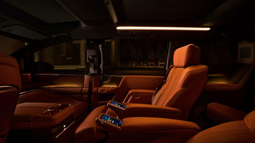 Оброблені шкірою наппа передні сидіння мають підігрів, вентиляцію та масаж. Однак найрозкішнішими виявилися крісла другого ряду з “режимом невагомості”. Як заявляє виробник, вони мають автоматичне регулювання залежно від положення першого і третього ряду.