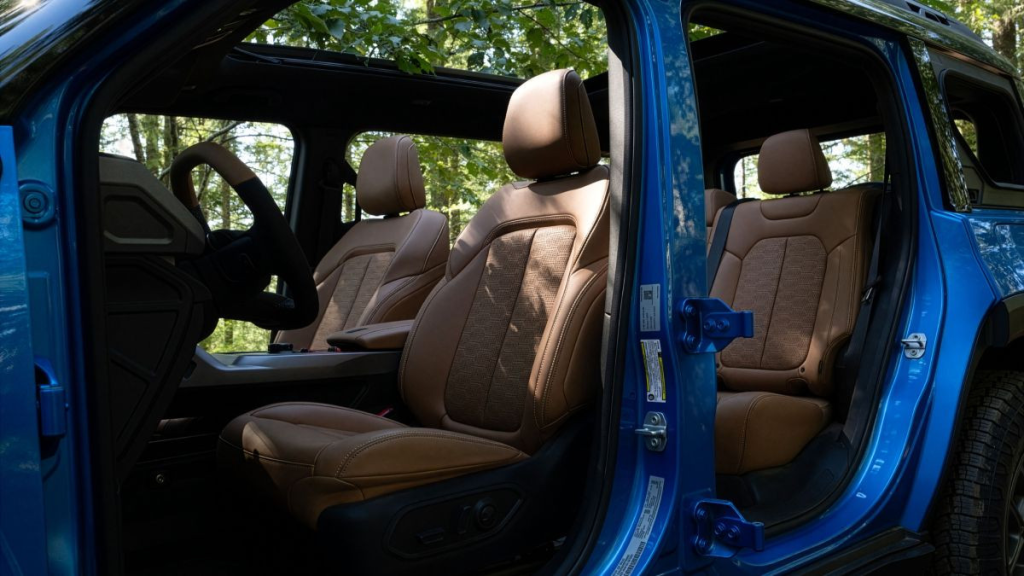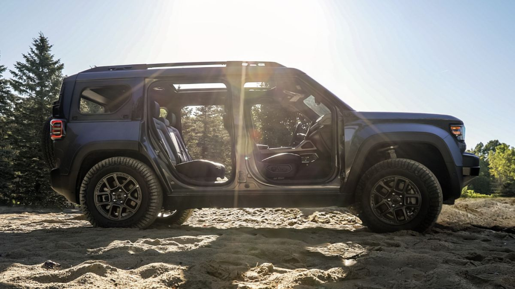 Однак набагато важливіше, що такі позашляховики оснащені колесами з шинами діаметром 33 дюйми, а їхній дорожній просвіт дорівнює 239 мм. Завдяки цьому електромобіль з чималою колісною базою (2870 мм) має непогану геометричну прохідність: кут в’їзду — 34 градуси, перекату — 23,5 градуса, з’їзду — 34,5 градуса.