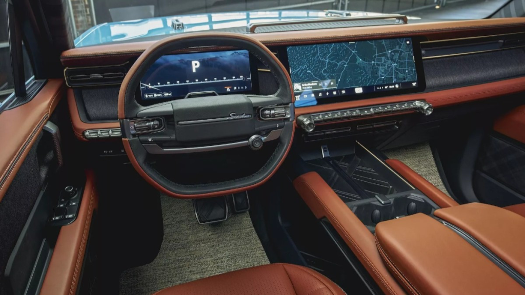 У салоні – коричневі шкіряні крісла і металевий декор, а також передбачений висувний навіс Cabana Top. У Scout вже заявили, що новинка показує, як могли б виглядати майбутні спецверсії позашляховика Traveler з різними поєднаннями кольорів.