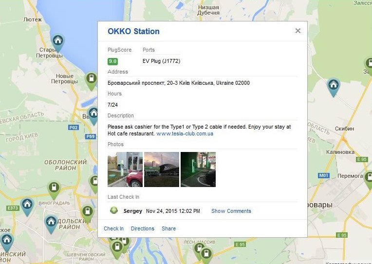 По состоянию на конец 2015 года, по информации вышеназванного портала, на территории украинской столицы работает уже более 30 зарядных установок.